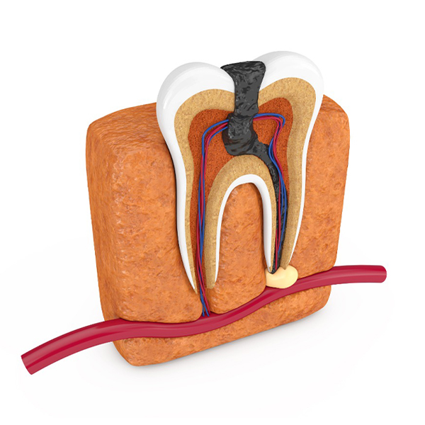 A root canal, or endodontic treatment, is the procedure that involves the removal of the dental pulp tissue from the root (canal) system of a tooth.